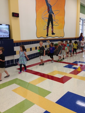 This is his class walking into the cafeteria. At first when I told him I was coming to eat with him he asked me why. I guess he was already embarrassed of me. Ha. Once he saw me and Olivia he was excited.